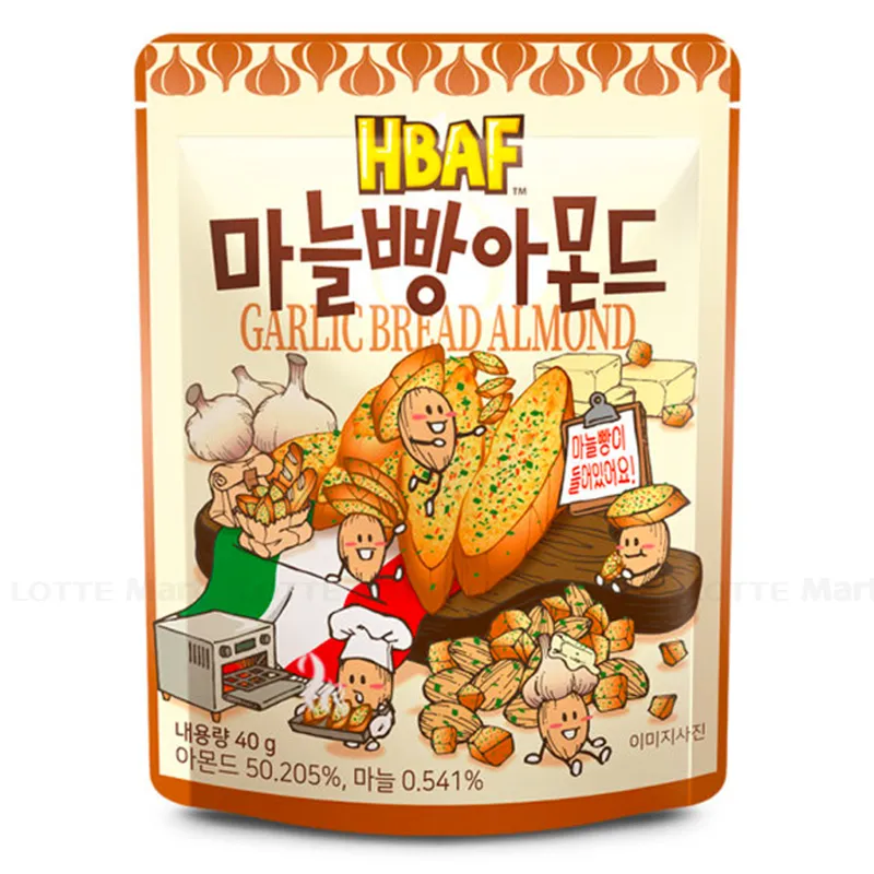 - Hạnh Nhân Và Bánh Mì Bơ Tỏi HBAF là một sự kết hợp đặc biệt giữa bánh mì bơ tỏi và hạnh nhân. Bánh mì có kích thước nhỏ vừa ăn, có độ giòn rụm và được tẩm vị bơ tỏi rất thơm. Hạnh nhân được làm bằng hạnh nhân California, có vị ngọt tự nhiên không ngấy do sử dụng mật ong trong nước.