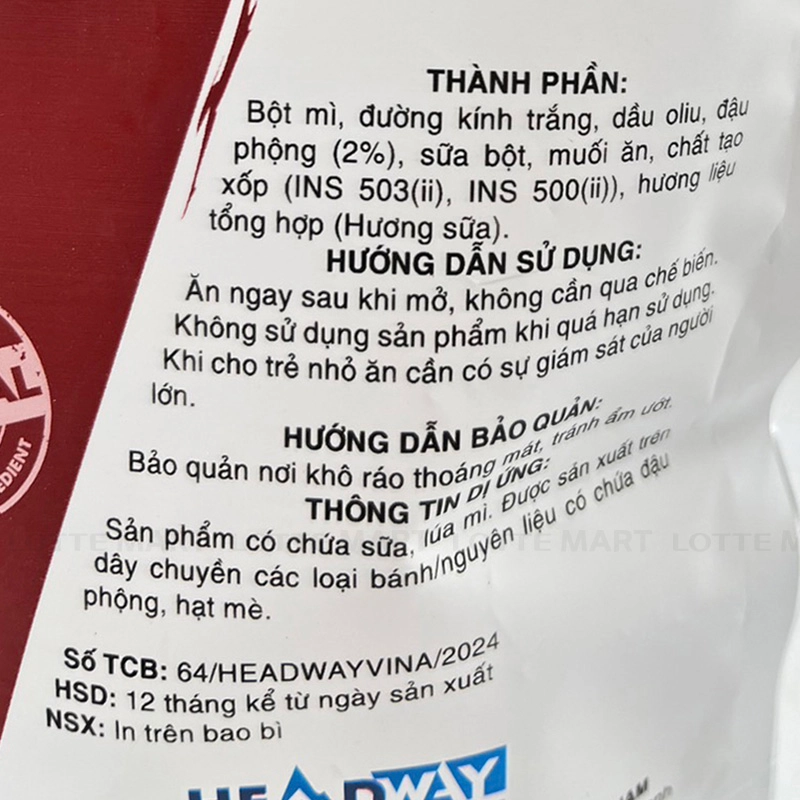 - Thông tin dị ứng: Sản phẩm có chứa sữa, lúa mì. Được sản xuất trên dây chuyền các loại bánh/nguyên liệu có chứa đậu phộng, hạt mè.