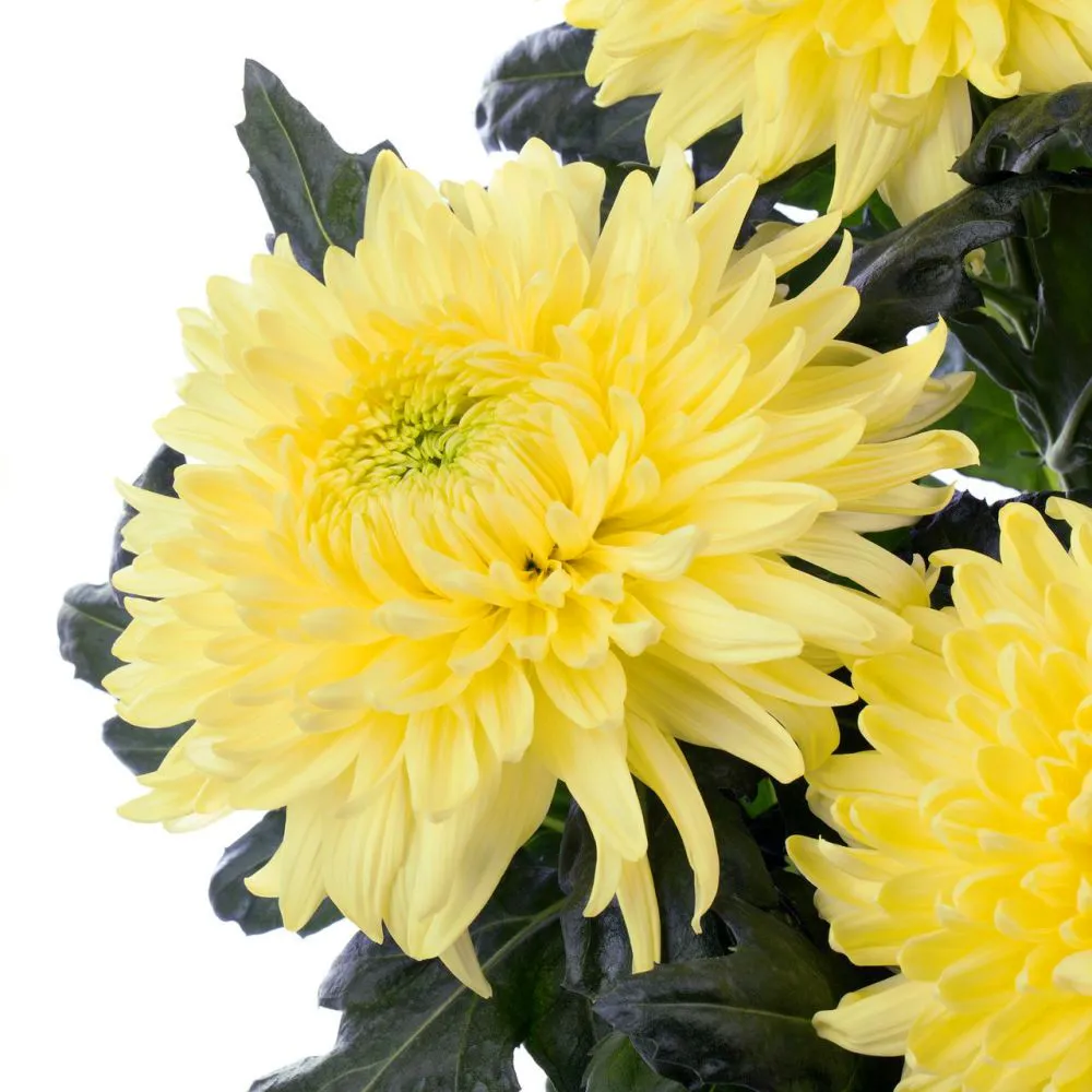 Hoa Cúc Magnum 5 Cành Dalat Hasfarm sở hữu kích thước bông lớn ấn tượng với sắc vàng đại diện cho sự sung túc, cánh hoa xếp lớp dày dặn và bung nở tròn đầy, mang lại vẻ sang trọng cho không gian.