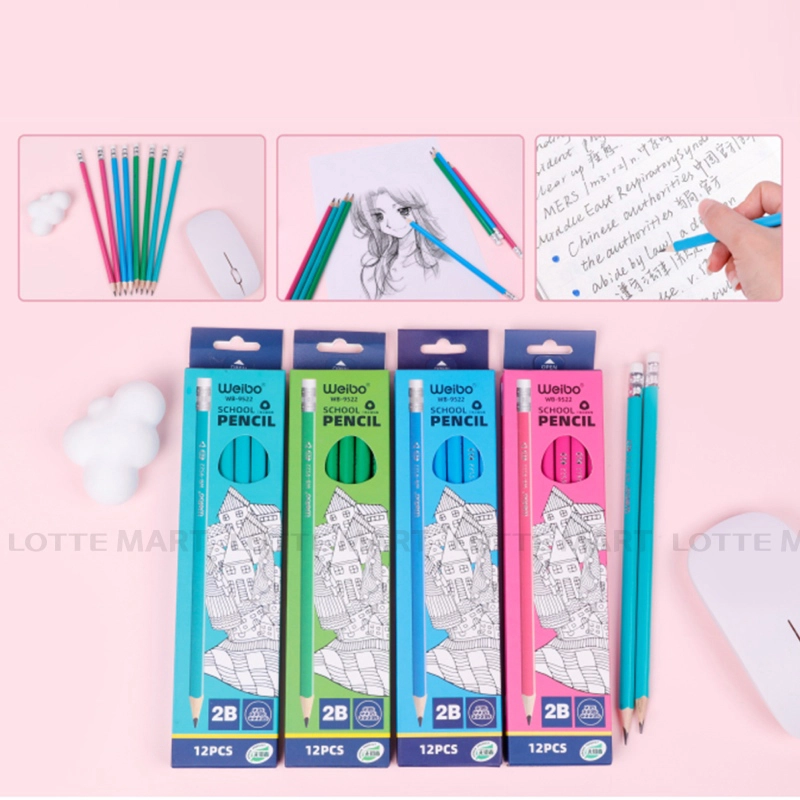 Hộp Bút Chì 2B Có Gôm Weibo 9522 12 Cây (Giao mẫu ngẫu nhiên)