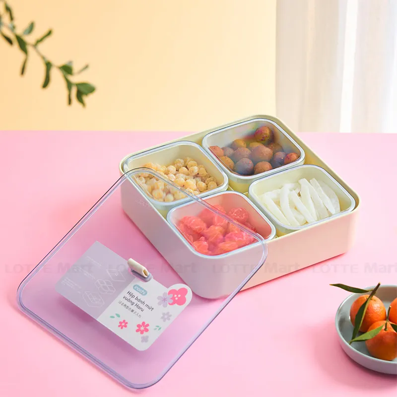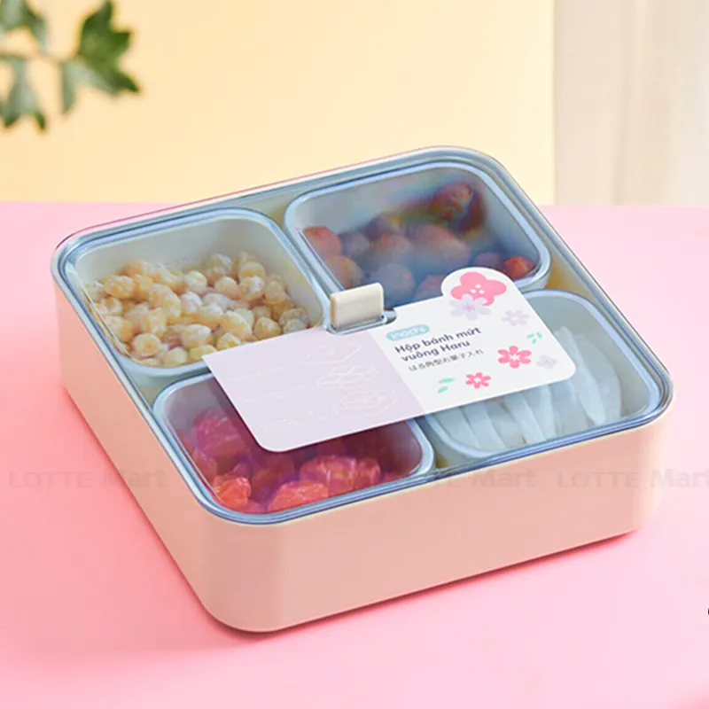 - Hộp thiết kế nhiều khay nhỏ có nắp kín, dễ dàng phân loại món ăn vừa đảm bảo vệ sinh, không chảy nước.
