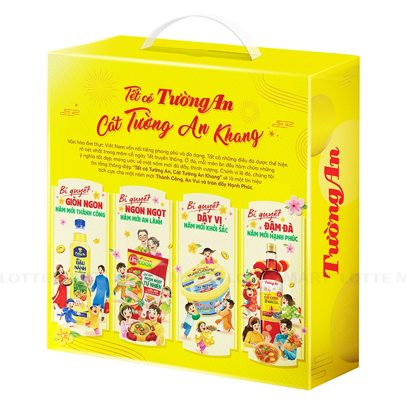 - Các sản phẩm trong hộp quà đều là gia vị Tường An quen thuộc, góp phần tạo nên những bữa ăn ngon miệng và trọn vẹn, đưa Tết thêm ý nghĩa và hạnh phúc.
