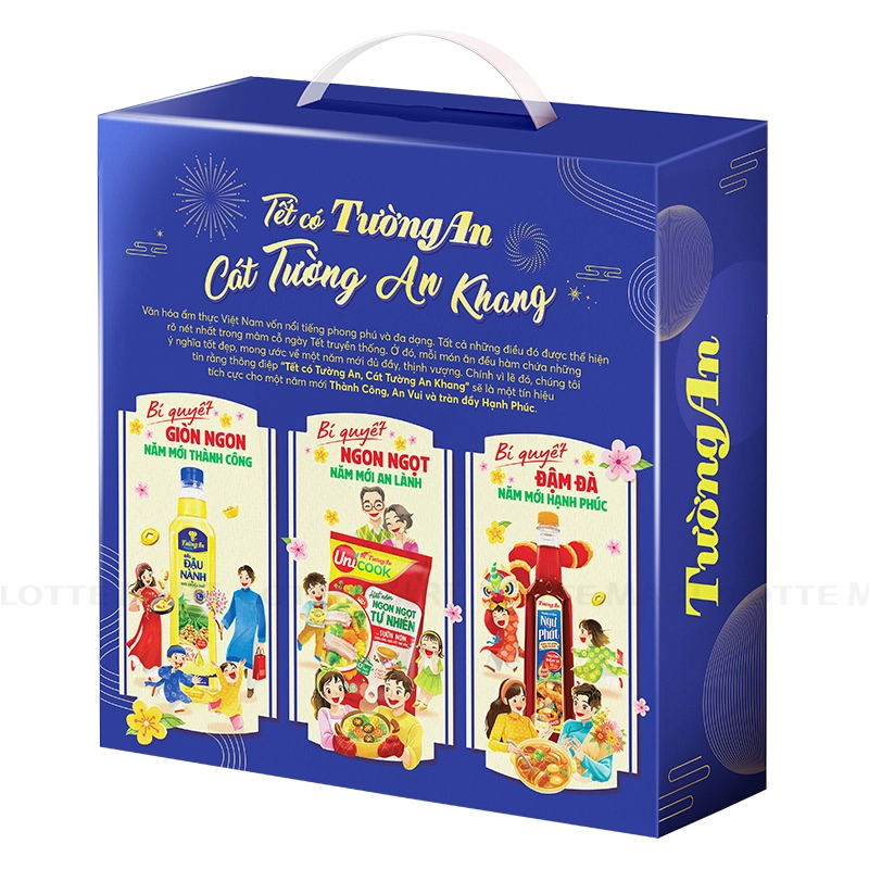 - Các sản phẩm trong hộp quà đều là gia vị Tường An quen thuộc, góp phần tạo nên những bữa ăn ngon miệng và trọn vẹn, đưa Tết thêm ý nghĩa và hạnh phúc.