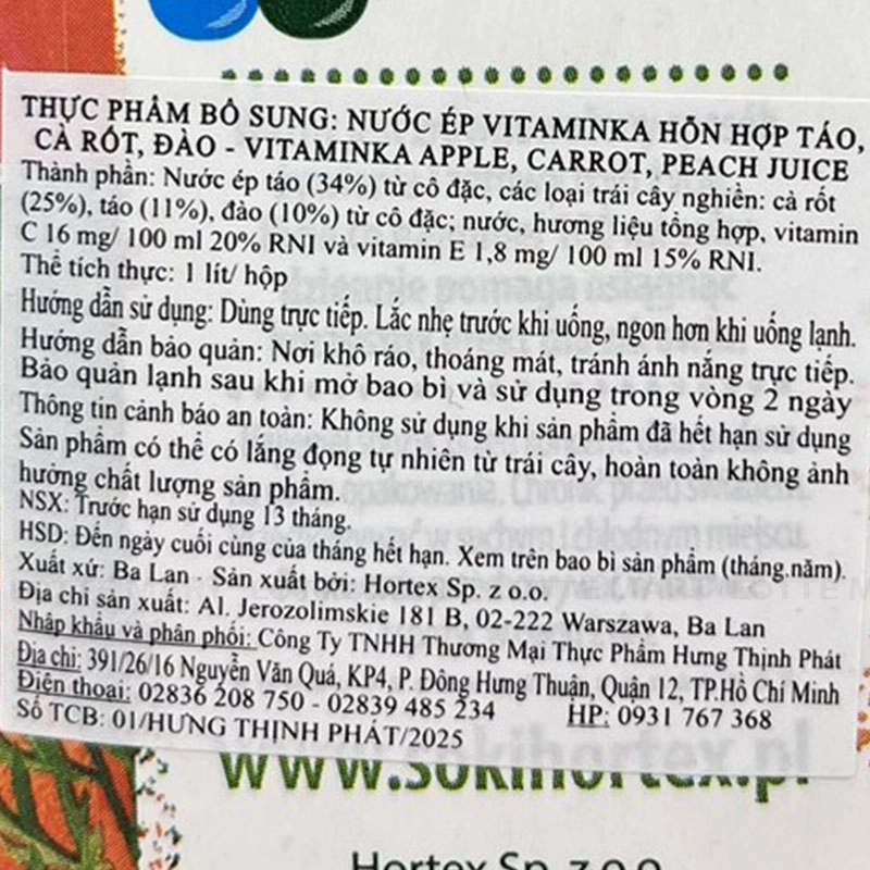 Nước Ép Hortex Vitaminka Vị Táo, Cà Rốt Và Đào Hộp 1L