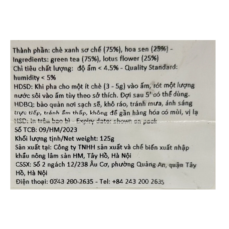 • Chè xanh sơ chế (75%), hoa sen (25%).