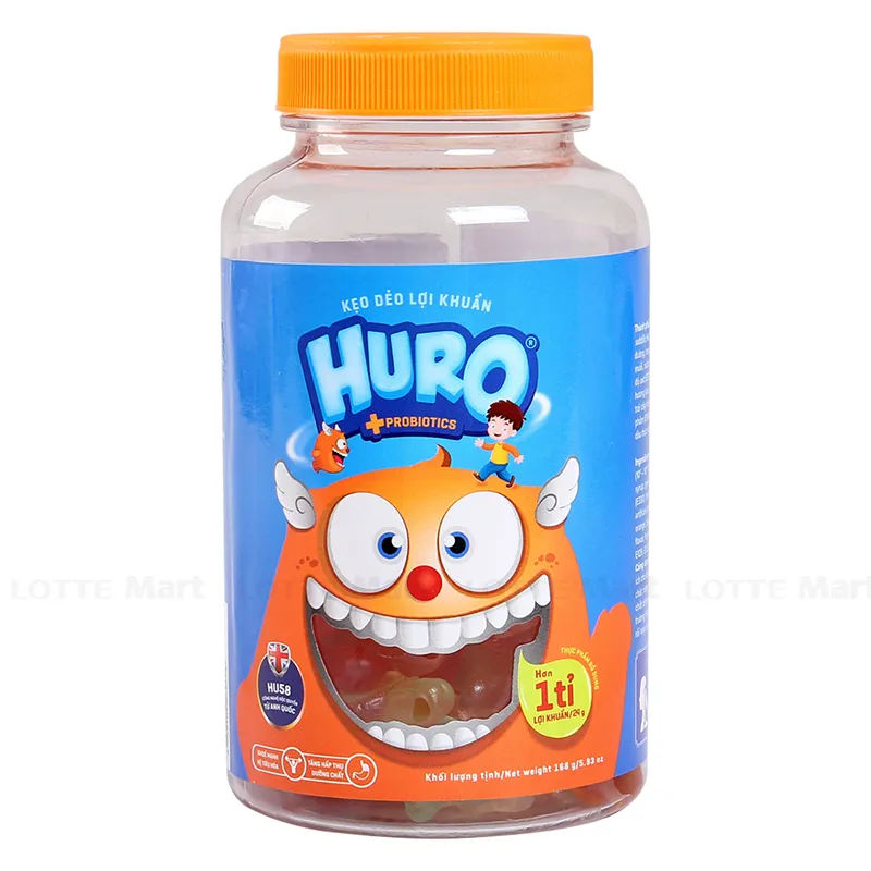 Kẹo Dẻo Lợi Khuẩn Huro Hũ 168g là sản phẩm kẹo dẻo đầu tiên có mặt tại Việt Nam chứa 1 tỉ lợi khuẩn HU58 - kết quả ra đời từ nghiên cứu của giáo sư Simon Cutting tại một Đại học ở Luân Đôn, Anh Quốc - có tác dụng kích thích hoạt động đường ruột nhờ sản sinh ra một lượng lớn men vi sinh giúp tiêu hóa thức ăn dễ dàng và tối ưu hấp thu dinh dưỡng.