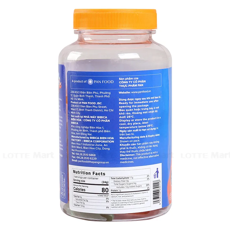 Bên cạnh đó, lợi khuẩn còn giúp loại bỏ độc tố ra khỏi cơ thể, làm sạch hệ tiêu hóa để tăng cường miễn dịch đường ruột. Với trẻ em, đây sẽ là thức ăn nhẹ lý tưởng kích thích trẻ thèm ăn và ăn ngon miệng hơn. Hương vị trái cây cùng hình thù các con vật ngộ nghĩnh của kẹo dẻo lợi khuẩn Huro chắc chắn sẽ khiến bé vô cùng thích thú. Sản phẩm đóng hũ 168g có nắp đậy tiện lợi.