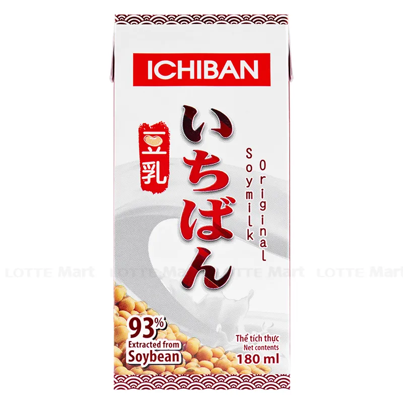 Sữa Đậu Nành Ichiban Nguyên Chất 93% Lốc 4 Hộp 180ml với 93% hạt đậu nành tự nhiên của Mỹ chọn lọc không biến đổi gen, tự nhiên không hóa chất, là tỉ lệ đậu nành cao nhất trong các dòng sữa đậu nành hiện nay tại Việt Nam. Hàm lượng protein dồi dào từ đậu nành có trong mỗi hộp sữa ICHIBAN sẽ mang đến nguồn dinh dưỡng hoàn hảo, nguồn năng lượng lành mạnh giúp bạn tăng cường sức khỏe toàn diện và giữ được tinh thần sảng khoái, khỏe mạnh.Đây chắc chắn sẽ tiếp tục là sự lựa chọn ưu tiên của người tiêu dùng quan tâm đến sức khỏe với 100% nguồn gốc hoàn toàn từ thực vật đạt chuẩn sản phẩm thuần chay, cùng 3 ưu điểm khác biệt trên thị trường sữa đậu nành hiện nay: