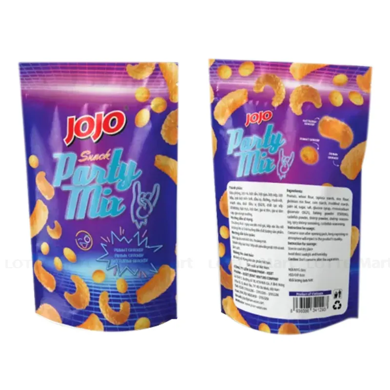 - Đậu Phộng Mix Snack Jojo Party là sản phẩm snack với sự kết hợp của các loại gia vị bùng nổ vị giác khi dùng. Snack Jojo thơm cay, vị snack giòn ngon thích hợp nhâm nhi cùng bia, thưởng thức khi xem phim, đi dã ngoại cùng bạn bè.