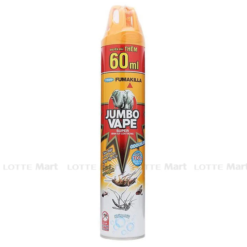 Xịt Côn Trùng Jumbo Vape Không Mùi Chai 600ml mang đến cho bạn và gia đình không gian thông thoáng, đuổi sạch ruồi muỗi và côn trùng. Xịt côn trùng Jumbo không mùi nên sẽ không gây ra cảm giác khó chịu khi sử dụng. Đặc biệt thành phần không gây hại cho sức khỏe của cả gia đình. Giúp bạn gạt bỏ mọi nỗi lo về các chứng bệnh do côn trùng gây ra, hạn chế tối đa các loại bệnh do côn trùng mang lại.