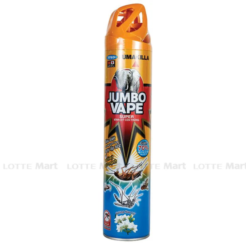 Bình xịt côn trùng Jumbo Vape hương hoa Lài dùng công nghệ diệt côn trùng tối ưu để tiêu diệt các loại ruồi, muỗi, kiến,... gây hại cho sức khỏe mọi gia đình.