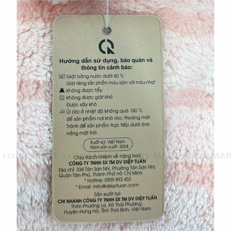Hướng dẫn bảo quản: Tránh phơi trực tiếp dưới ánh nắng mặt trời quá lâu để bảo vệ màu sắc và chất lượng khăn.
