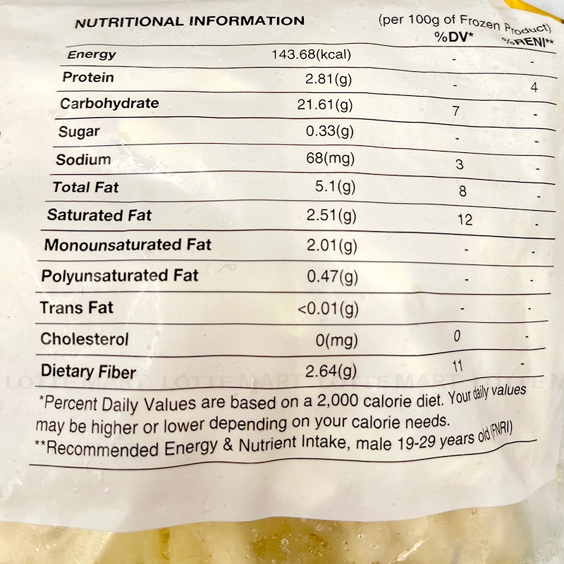 - Khoai tây (95%) và dầu thực vật ăn được (dầu olein cọ tinh chế).