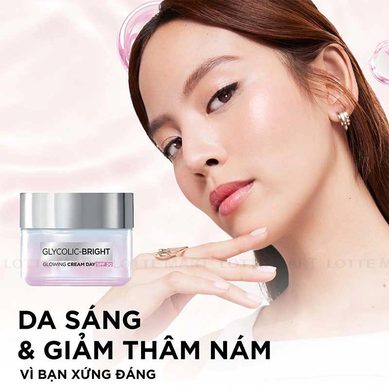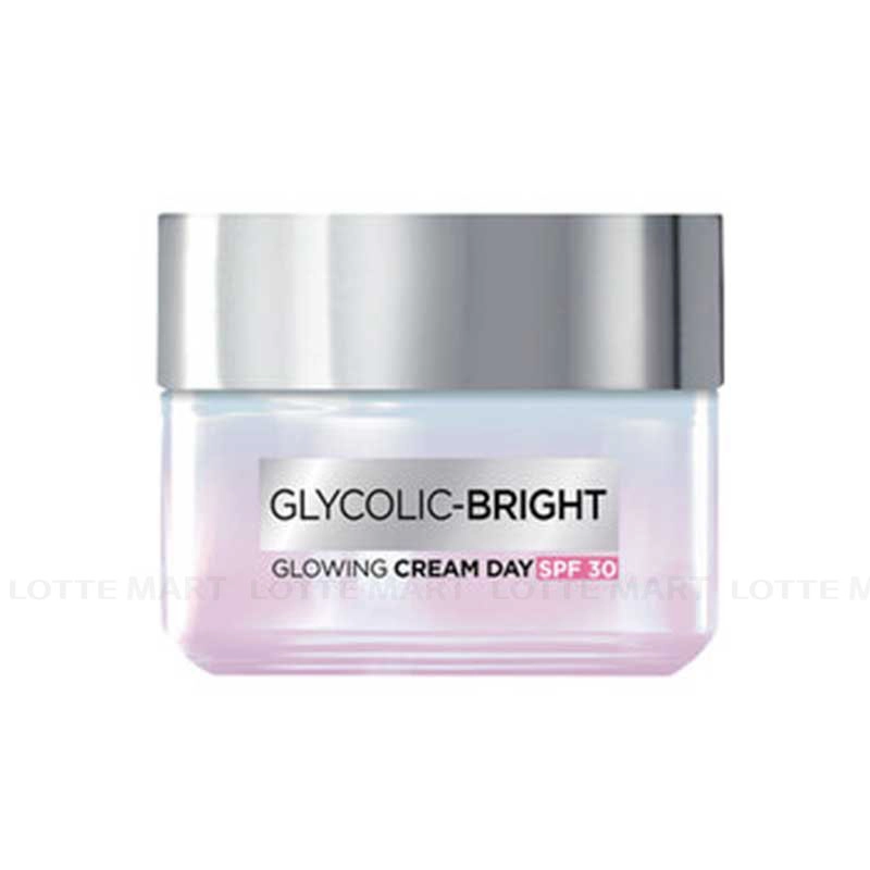 - Kem Dưỡng Sáng Da Ban Ngày L'Oreal Paris Glycolic Bright Glowing Cream là sản phẩm kem dưỡng da đến từ thương hiệu mỹ phẩm L’Oreal của Pháp, công thức đặc biệt với Glycolic Acid làm sáng và Vitamin E chống oxy hóa, loại bỏ tế bào chết xỉn màu, ức chế sản sinh melanin làm giảm các vết thâm nám cho làn da sáng đều màu rõ rệt.