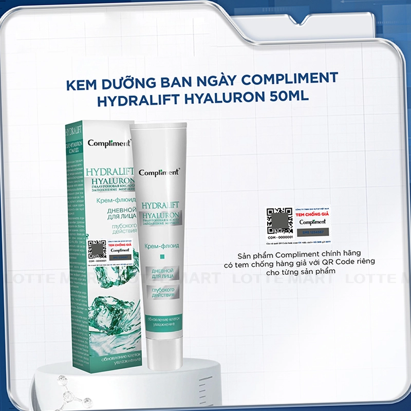 Kem Dưỡng Ban Ngày Compliment Hydralift Hyaluron là sản phẩm thuộc thương hiệu Compliment của Tập đoàn TIMEX - một trong những doanh nghiệp sản xuất mỹ phẩm lớn và nổi tiếng nhất nước Nga được thành lập từ năm 1994.