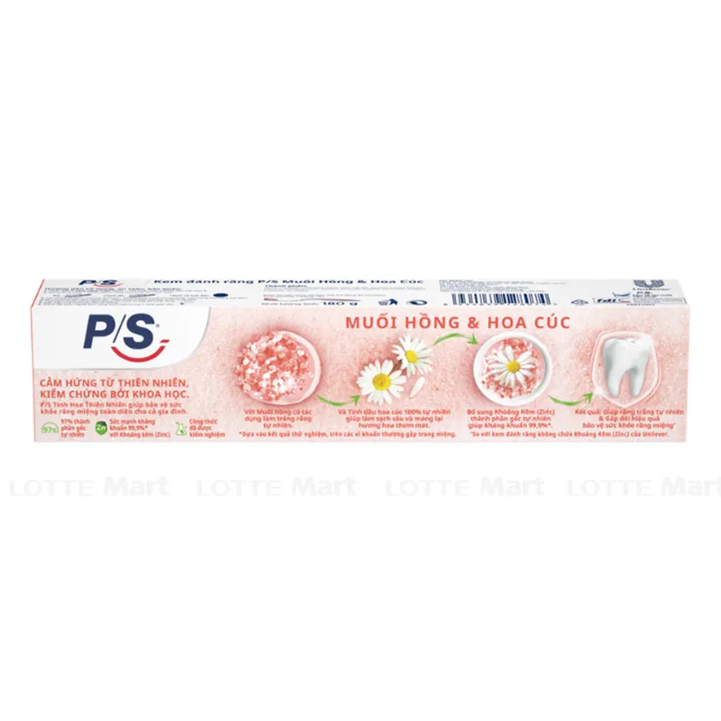 - Kem Đánh Răng P/S Muối Hồng Và Hoa Cúc với thành phần 95% gốc tự nhiên giúp trắng răng lành tính.
