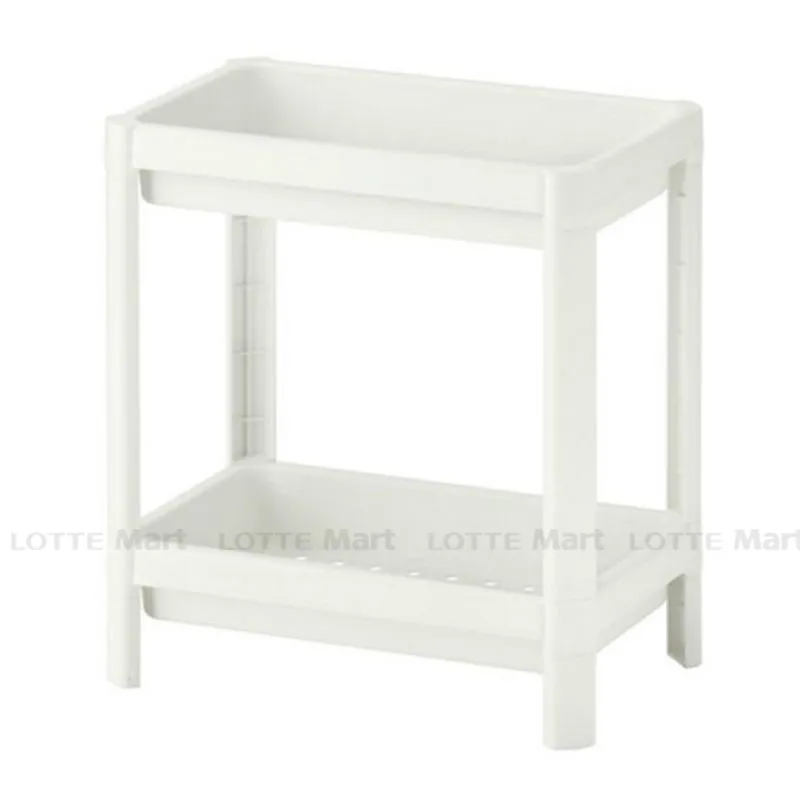 Kệ để đồ có thiết kế 2 tầng với 4 chân đứng vững chắc, thích hợp để đựng các đồ dùng, phụ kiện trong phòng tắm, nhà bếp, phòng khách, phòng ngủ, sân vườn,...