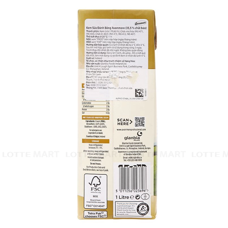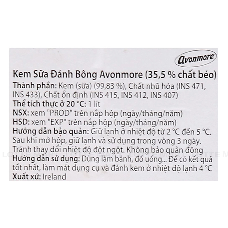 Kem Avonmore Whipping Hộp 1L
