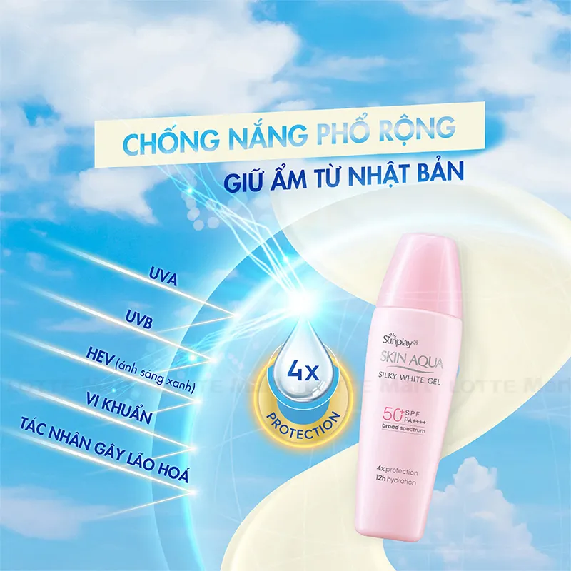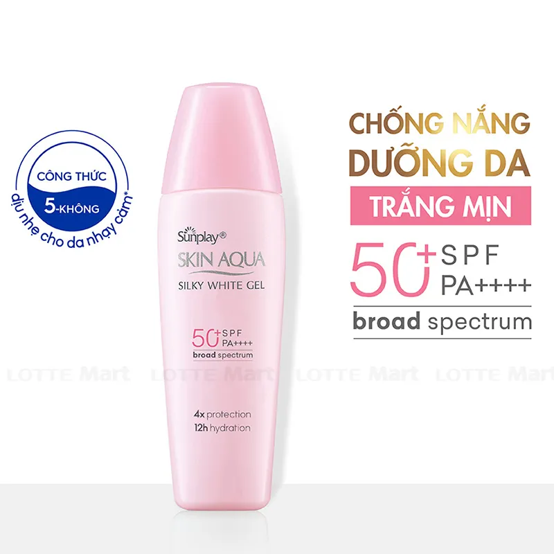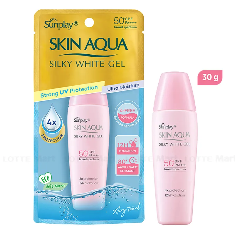 - Kem Chống Nắng Sunplay Skin Aqua SPF50 Sunplay Skin Aqua Silky White Gel có dạng gel trong mướt, cho cảm giác mượt mà nhẹ tênh, giúp bạn chống nắng dưỡng da hiệu quả.