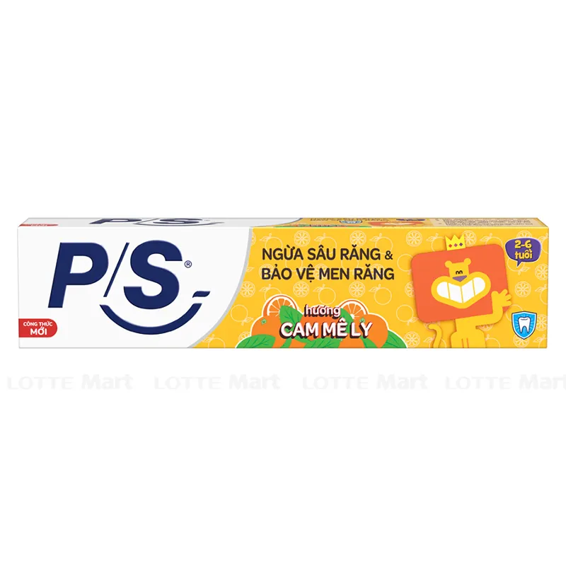Kem Đánh Răng P/S Hương Cam Cho Trẻ 2-6 Tuổi chăm sóc nướu, giúp trắng răng, giảm ê buốt, giảm mảng bám, ngừa sâu răng, hơi thở thơm mát.