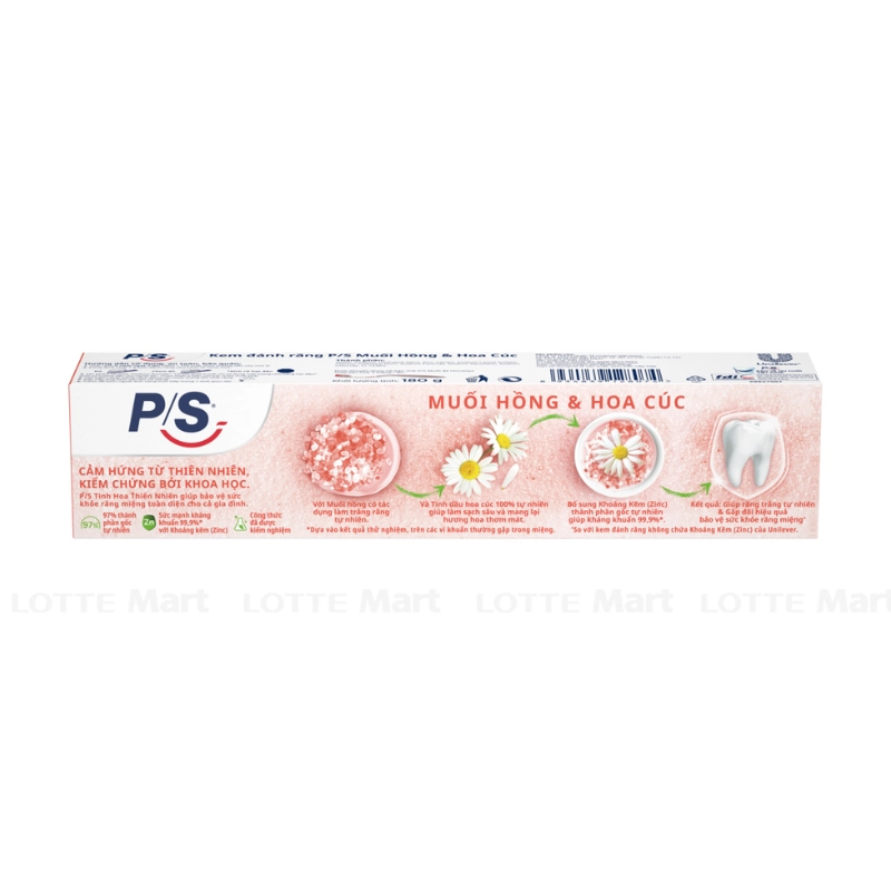 - Kem Đánh Răng P/S Muối Hồng Và Hoa Cúc với thành phần 95% gốc tự nhiên giúp trắng răng lành tính.