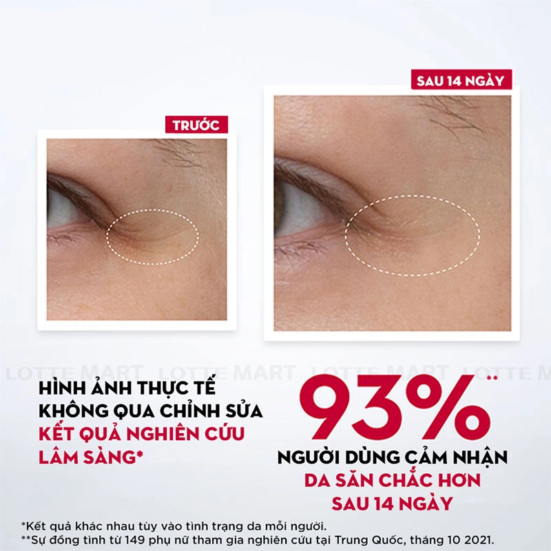- Dùng ngón tay lấy một lượng kem vừa đủ thoa đều lên mặt và cổ, mát xa nhẹ nhàng theo hình tròn từ dưới lên trên, tập trung ở vùng nhiều nếp nhăn.