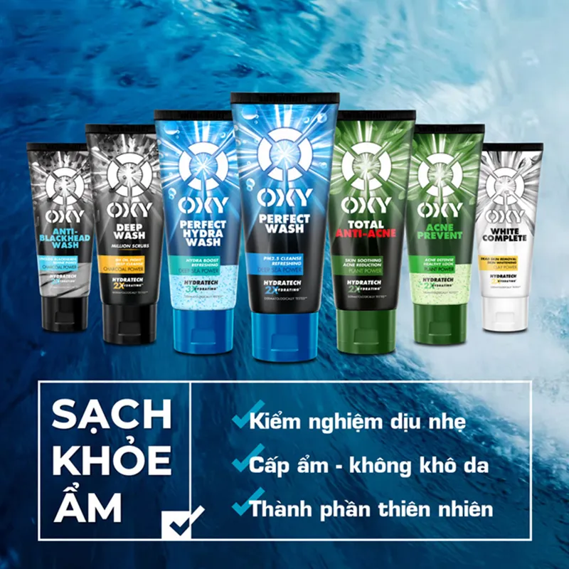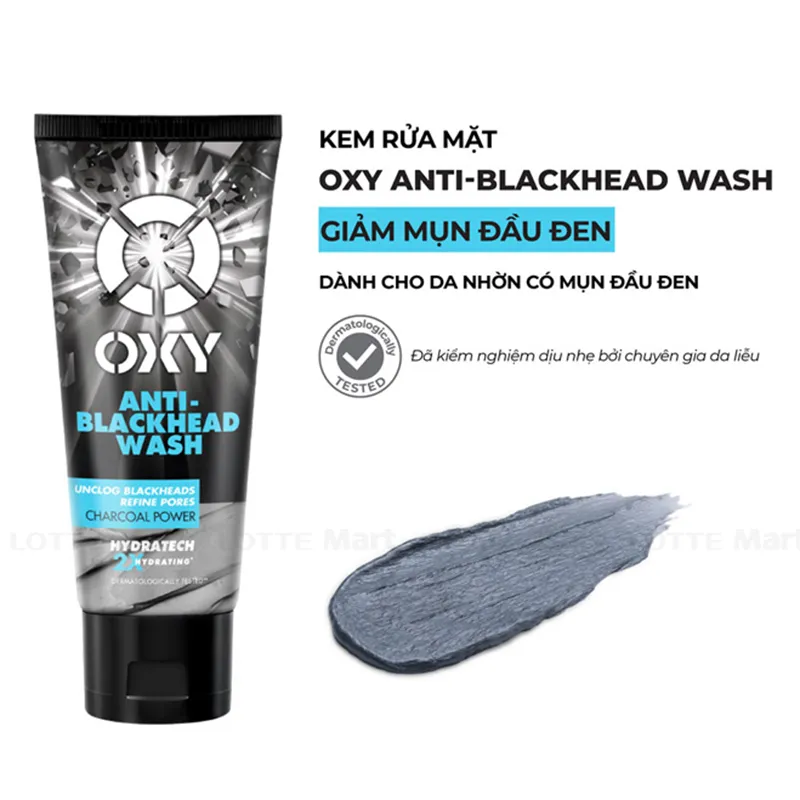 Kem Rửa Mặt Oxy Anti-Blackhead Wash Giảm Mụn Đầu Đen Tuýp 100g là sản phẩm sữa rửa mặt chăm sóc da dành cho nam giới đến từ thương hiệu OXY. Công thức chứa sức mạnh từ hàng hạt Than đen siêu vi, AHA,PHA kết hợp Công nghệ cấp ẩm HydraTech giúp đánh bay nhờn vượt trội, giúp làm sạch mụn đầu đen hiệu quả.
