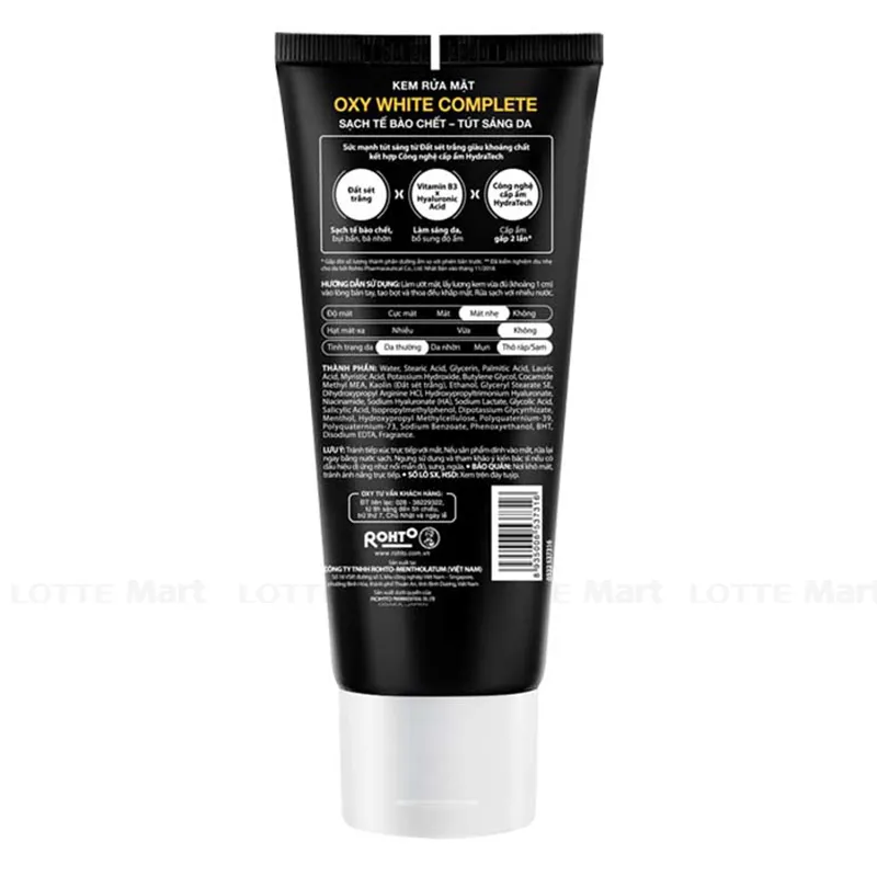 Kem Rửa Mặt Cho Da Trắng Khỏe Rohto Oxy White Complete (100g) sẽ nhẹ nhàng làm sạch bề mặt da hiệu quả mà không gây kích ứng da đồng thời ngăn ngừa mụn xuất hiện trở lại. Ngoài ra, Oxy White Complete còn có các thành phần dưỡng trắng hiệu quả từ chiết xuất tảo nâu, mang lại cho nam giới làn da trắng sáng tự nhiên.