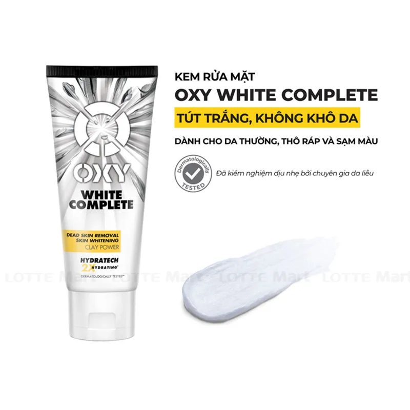 Oxy White Complete là kem rửa mặt trắng da thuộc dòng sữa rửa mặt oxy dành cho nam, giúp làm sạch sâu, cho da trắng sáng, mịn màng. Kem có công thức tút trắng chuyên sâu từ Biển Chết, cho làn da trắng khỏe từ bên trong với các thành phần.