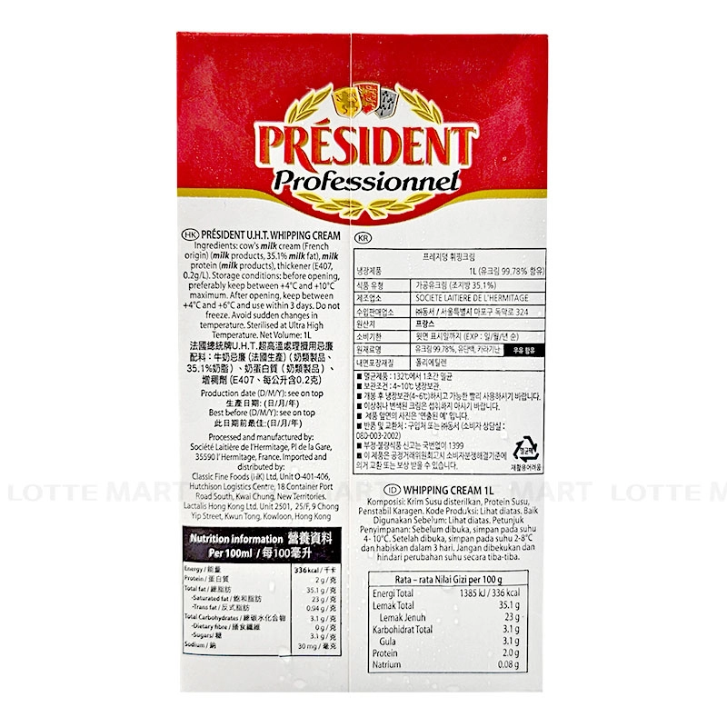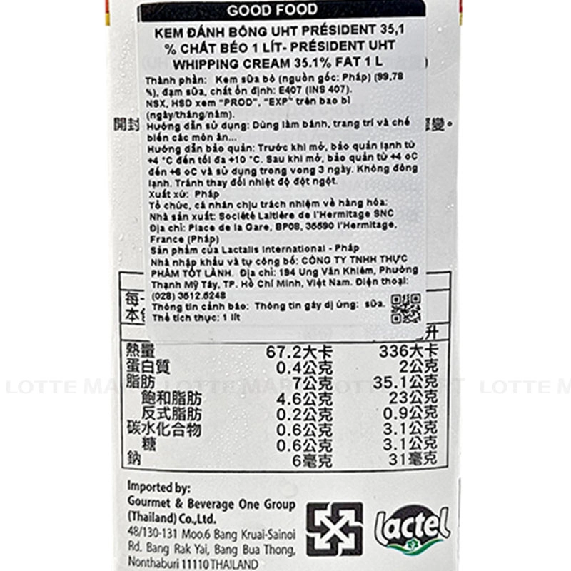Kem Đánh Bông 35.1% Chất Béo President 1L