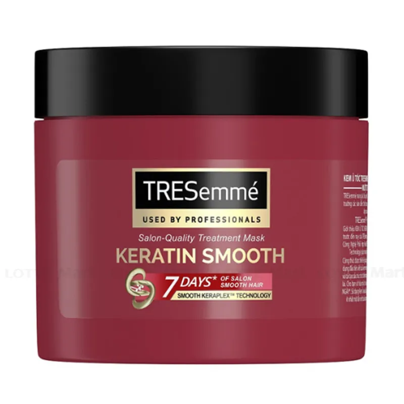 - Kem ủ tóc TRESemmé Keratin Smooth chứa tinh dầu dưỡng tóc Argan từ vùng Morroco loại dầu được mệnh danh là tinh dầu vàng từ vùng Morocco, chứa hàm lượng cao các chất chống oxy hóa, axit béo thiết yếu và Vitamin E, giúp tăng cường độ ẩm và độ đàn hồi tự nhiên của tóc, làm giảm và ngăn ngừa tình trạng tóc khô xơ, khó vào nếp, đồng thời phục hồi và bảo vệ các sợi tóc khỏi hư tổn.