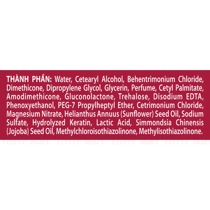 - Bên cạnh đó, thành phần còn chứa Keratin, có tác dụng giúp tóc khỏe mạnh tự nhiên từ bên trong, bảo vệ tóc khỏi các tổn thương từ nhiệt độ cao hay hóa chất tạo kiểu, giúp tóc trở nên mềm mại, vào nếp và bóng mượt.
