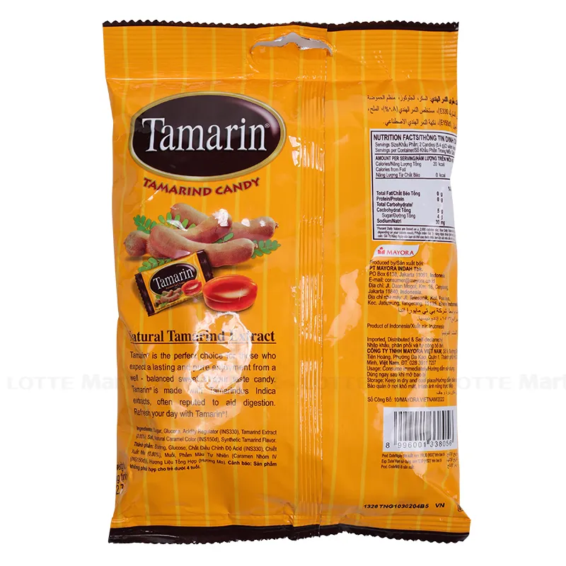 Hương vị chua ngọt thanh mát chiết xuất từ trái me tươi, không chỉ ngon miệng, kích thích vị giác mà còn hỗ trợ tiêu hoá. Kẹo me Tamarin gói 135g tạo cho bạn cảm giác thích thú trong miệng. Tamarin là thương hiệu đến từ Indonesia, sản xuất kẹo chất lượng