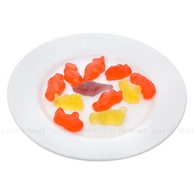 Thành phần: Đường, mạch nha (tinh bột sắn, muối, nước), gelatin, chất điều chỉnh độ axit (E330), hương (dâu, cam, chanh, trái cây) tổng hợp, phẩm màu thực phẩm (E160a(i), E110, E129, E133).