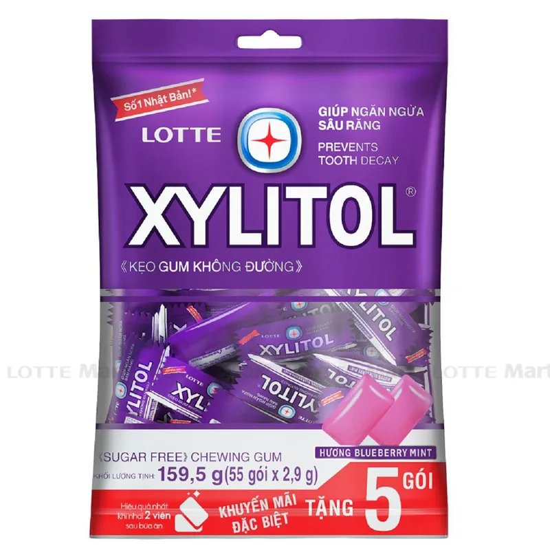 LOTTE XYLITOL là kẹo gum nổi bật được Hội Răng Hàm Mặt Việt Nam chứng nhận rằng việc nhai kẹo hàng ngày giúp loại trừ vi khuẩn gây sâu răng và làm giảm mảng bám trên bề mặt răng. Hãy nhai 2 viên gum LOTTE XYLITOL sau mỗi bữa ăn kể cả các dịp ăn vặt để hỗ trợ ngăn ngừa sâu răng tối ưu. LOTTE XYLITOL là nhãn hiệu kẹo gum bán chạy nổi tiếng Nhật Bản từ năm 1997 đến năm 2019 theo dữ liệu nghiên cứu thị trường SRI của công ty Intage Inc.