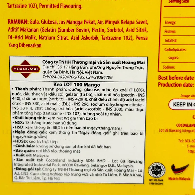 - Kẹo được làm từ thành phần: đường, gluco, nước ép xoài, nước... Không sử dụng chất bảo quản hay phụ gia độc hại nên tuyệt đối an toàn cho sức khỏe người tiêu dùng.