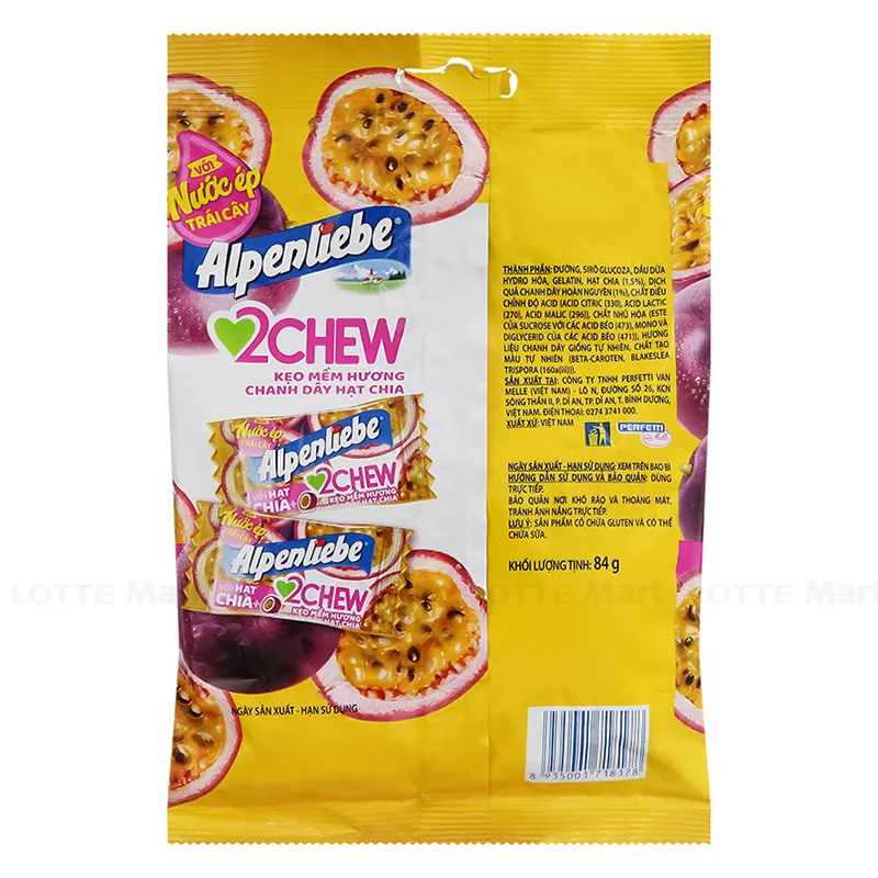 Kẹo mềm 2Chew Kiwi chanh dây hạt chia 84g