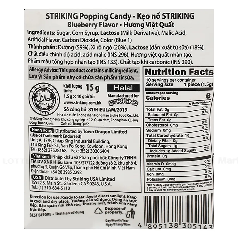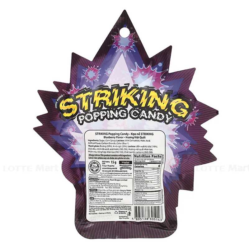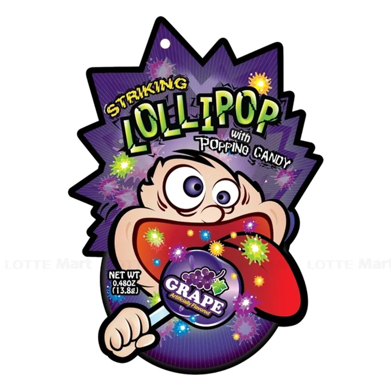 • Kẹo Mút Nổ Striking Hương Nho là loại kẹo nổ gồm 1 cây kẹo lollipop với hình dáng ngộ nghĩnh với bột kẹo nổ.