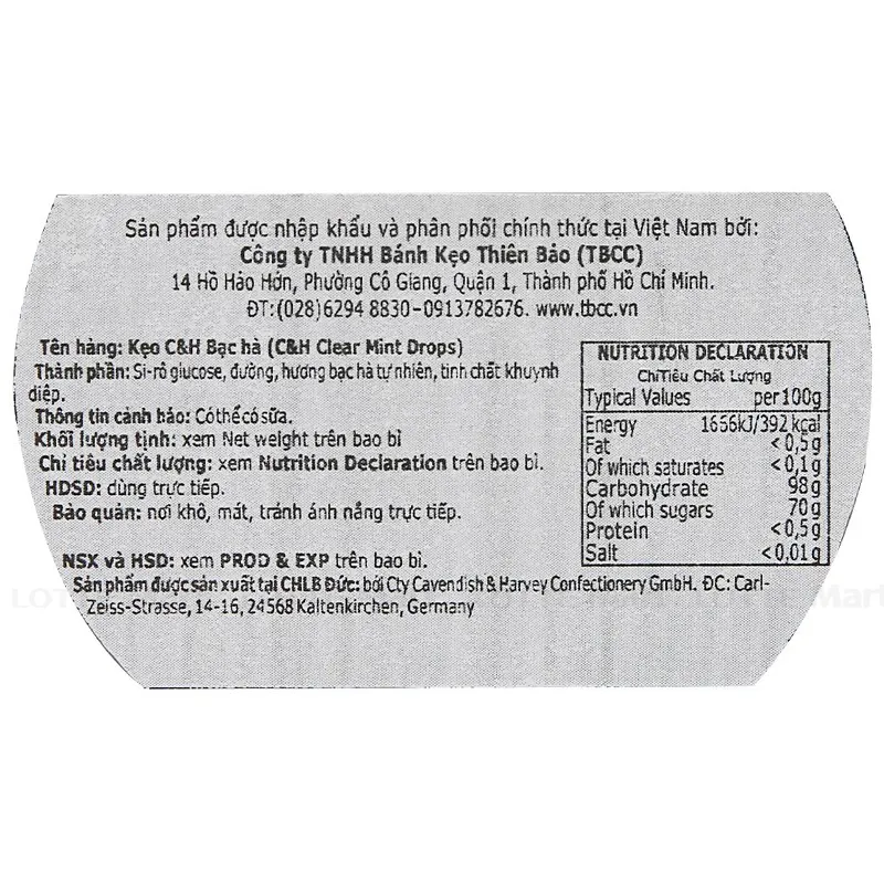 - Si-rô glucose, đường, hương bạc hà tự nhiên, tinh chất khuynh diệp.