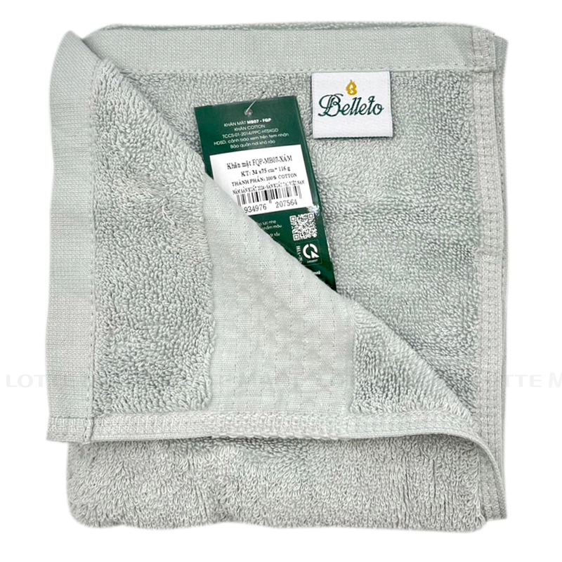 - Khăn Mặt Belleto MB07 Màu Xám được sản xuất từ 100% sợi bông cotton có khả năng thấm hút nước tốt, thông thoáng và mang đến cảm giác êm ái tuyệt vời.