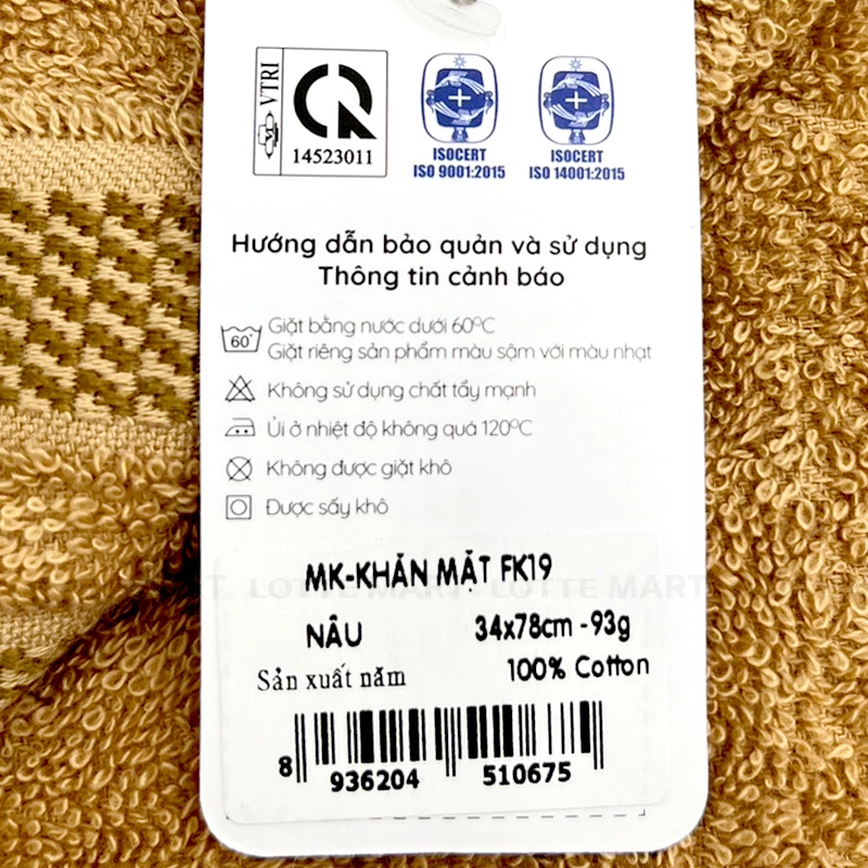 Khăn Mặt Cotton MK FK19 Màu Nâu 34 x 78cm 93g