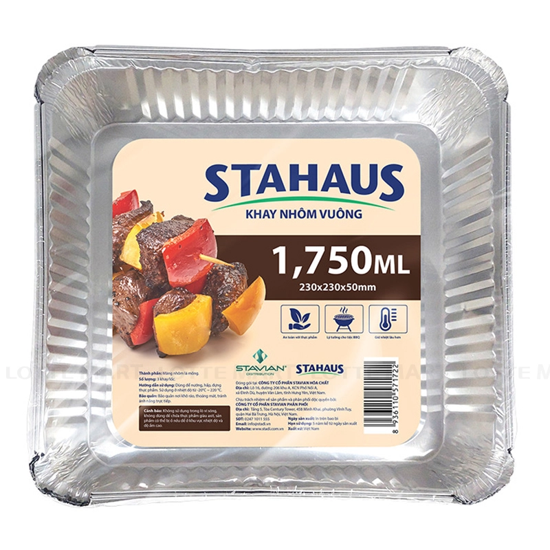 Lốc 3 Khay Nhôm Vuông Stahaus 1750ml