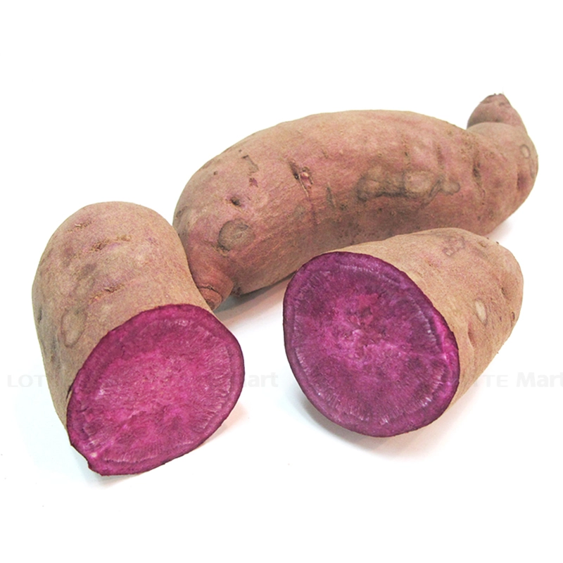 - Khoai lang tím là loại rau củ ngọt và nằm ở dưới đất, các củ hình thuôn dài, lớp vỏ mang màu tím sẫm, hương vị rất ngọt.