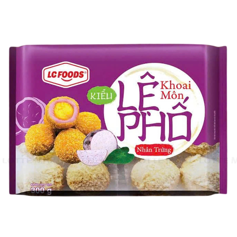 - Khoai Môn Lệ Phố Nhân Trứng LC Foods là sự kết hợp tinh tế giữa lớp vỏ bánh giòn rụm, màu tím tự nhiên từ khoai môn tươi và phần nhân trứng sữa dừa béo ngậy, mang đến vị ngọt dịu dàng, tan ngay trong miệng.