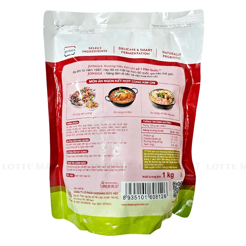 - Kim Chi Cải Thảo Cắt Lát Jongga, được chế biến theo công thức truyền thống và lên men tự nhiên, mang đến hương vị thơm ngon, tiện lợi, phù hợp với khẩu vị người dùng hiện đại.