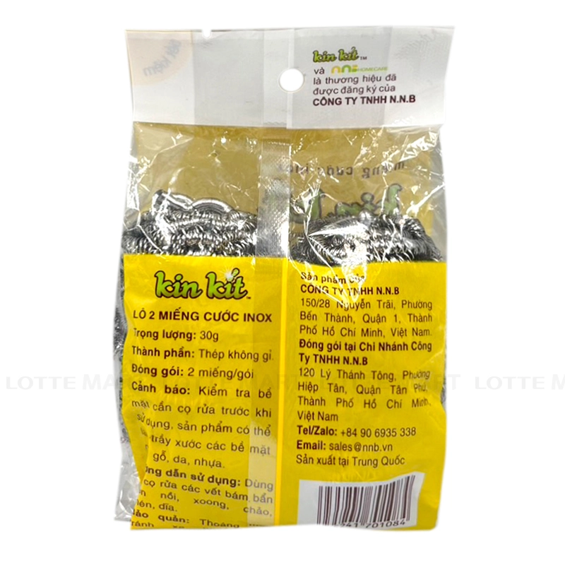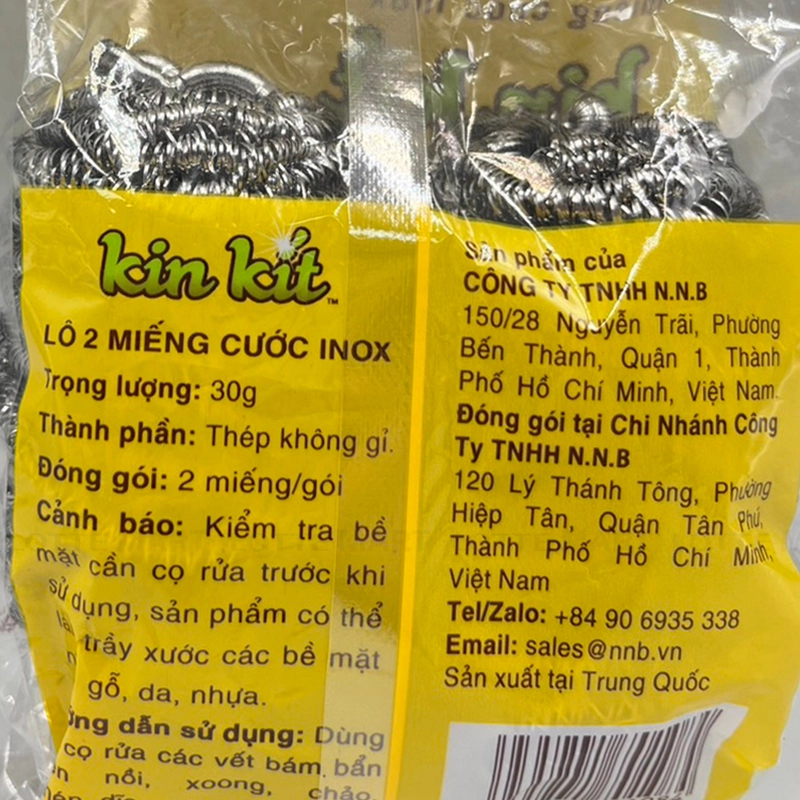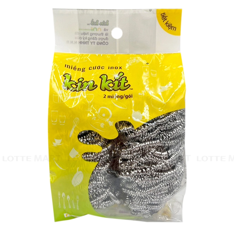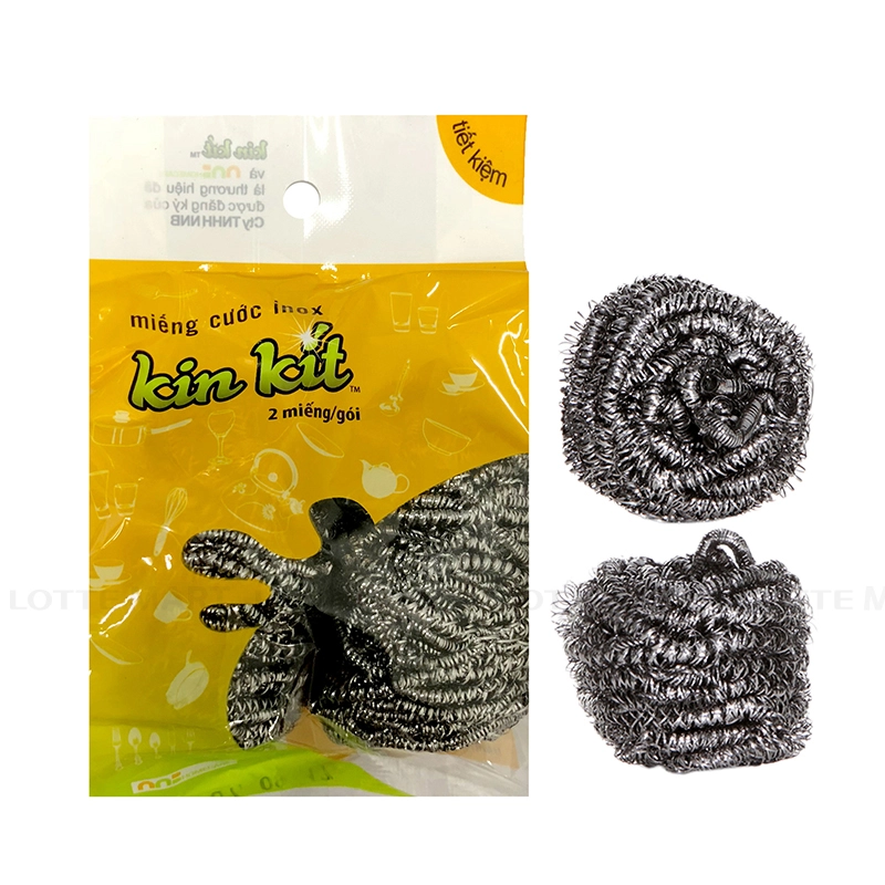 - Miếng Cước Inox Kin Kít được làm từ chất liệu sợi cước inox cứng chắc giúp đánh bay vết bẩn trên xoong nồi, chén dĩa, vết khét đen, vết ố trên nồi, chảo,… nhanh và sạch hơn gấp 3 lần so với các sản phẩm thông thường.
