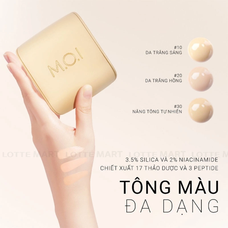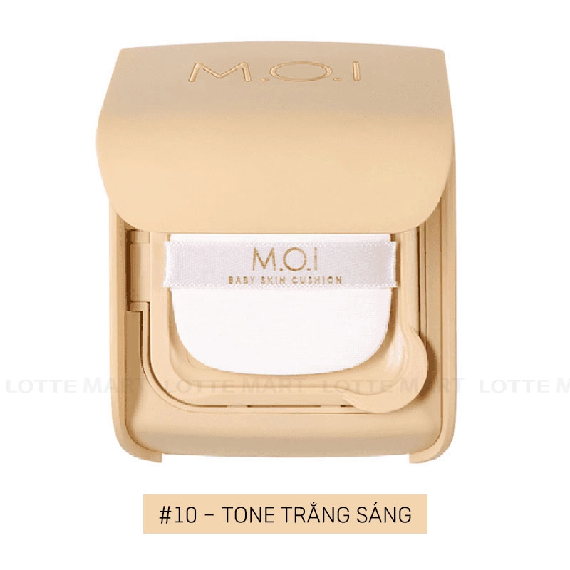 - Phấn Nước M.O.I Baby Skin Cushion 50+ PA+++ #10 - Tone Da Trắng Sáng với công nghệ hạt phấn nano giúp che mờ khuyết điểm, làm đều màu da chỉ trong tích tắc cho làn da rạng rỡ.