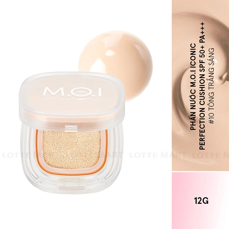 - Phấn nước M.O.I Iconic Perfection Cushion #10 – Da trắng sáng sở hữu khả năng che phủ khuyết điểm tốt, tạo lớp nền mịn lì, kiềm dầu và bền màu suốt cả ngày dài.