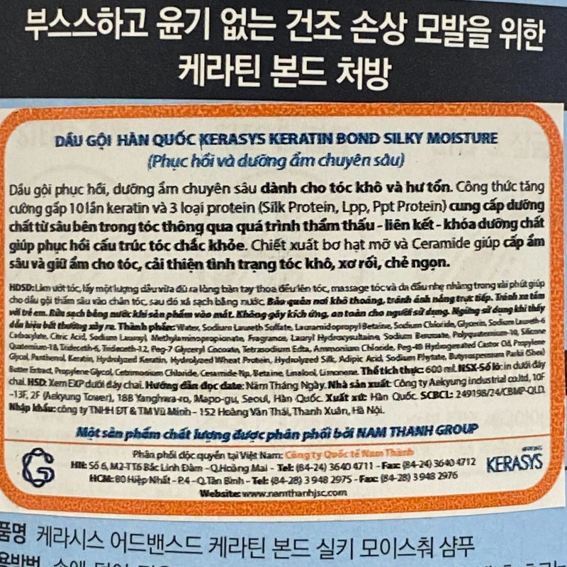 Dầu Gội Kerasys Keratin Dưỡng Ẩm Chuyên Sâu với công thức được kết hợp 3 loại Protein (Silk, Lpp, Ppt) giúp nuôi dưỡng tóc qua 3 bước từ thẩm thấu, liên kết và khóa dưỡng chất, giúp phục hồi mái tóc chắc khỏe từ sâu bên trong.
