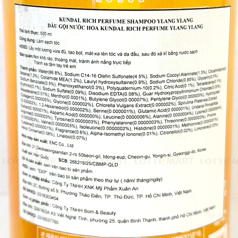 Dầu Gội Kundal Rich Perfume Ylang Ylang Chai 500ml